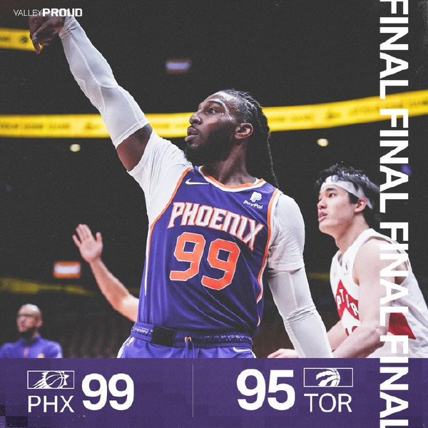 24直播网1月12日讯 NBA常规赛继续进行,六连胜的猛龙主场迎战太阳,后者上场不敌热火暂时让出西部第一,目前他们与勇士战绩相同,首节一上来双方你来我往一度僵持,中段范弗里特连续取分率队打出11-0小高潮,首节结束时猛龙领先8分,次节回来,克劳德突然发力单节独得13分,保罗和布克联手追分,末段西亚卡姆及时回暖不断打进,半场战罢,猛龙继续领先2分。易边再战后双方比分继续紧咬,末段布克率队一度反超,但布歇联手西亚卡姆立刻回应,三节结束后猛龙依然领先2分,末节上来,克劳德和布里奇斯连中三分,太阳一波8-0一度确立优势,猛龙内外结合实现反超,但保罗和布克连进中投夺回优势,关键时刻太阳连中罚球,最终太阳99-95力克猛龙。