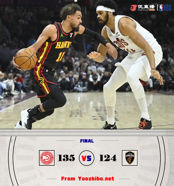 老鹰135-124战胜骑士 特雷-杨20+22 米切尔30+6 小莫布里22+13