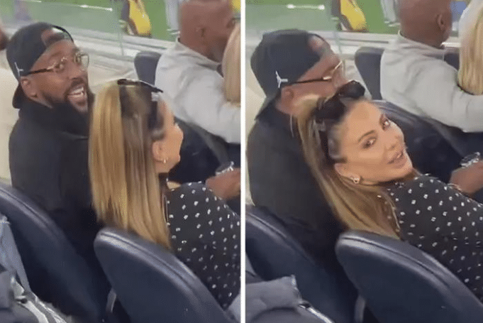 24直播网11月22日,乔丹之子马库斯-乔丹和皮蓬前妻拉尔萨-皮蓬又约会,一起观看NFL洛杉矶闪电队比赛,被一位激进的球迷劈头盖脸一通怒骂,两人镇定自若,没有理会这位男子的言语攻击。